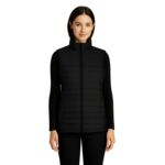 37 gsm – 1.1 oz./yd2 – 2 oz./lin. yd 100 nylon taffeta with water repellent finish. Insulation: lightweight 100% recycled polyester.  YKK front zipper. Zippered side entry pockets.  Zocket embroidery access. Black elastic binding at armholes.