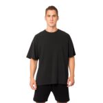 Heavy jersey. Pigment dyed. Side-seamed. Double-needle top-stitch on sleeve and bottom hem. Under 6% shrinkage.