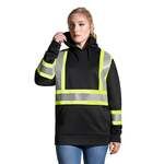 280 gsm – 8.3 oz./yd2 – 14 oz./lin. yd 100% polyester one side brushed fleece with anti-pill finish.  Adjustable shock cord and double lined hood. Double ribbed cuff and hem. Front zipper closure.  4” hi-vis contrast band with 2” 3M reflective tape on front and back body and sleeves.  Meets CSA standards.